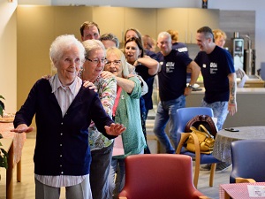 Een interactief programma vinden voor ouderen moeilijk? Voor stichting Zin uit Naarden was dat geen enkel probleem. Daarom had men bij ons de Krasse Knarren Show geboekt. Voor de bewoners van woonzorgcentrum Robijnhof in Leiden moest het een gezellige middag worden. En dat werd het zeker.