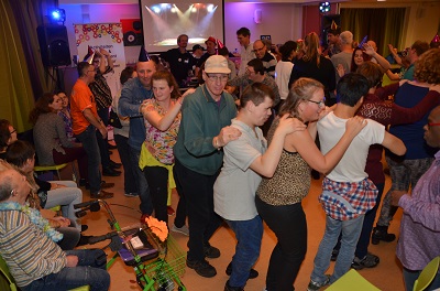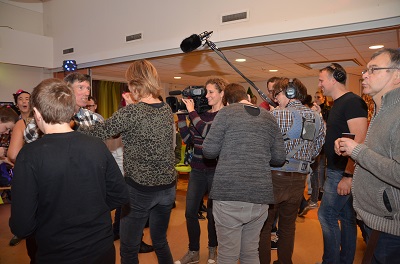 De televisieopnames van de Up & Down Discoshow trokken afgelopen dinsdag veel publiek. Ruim zestig cliënten met een verstandelijke beperking kwamen dansen en feesten in het “Forum”. De dj’s die op ’s Heeren Loo in Druten wonen, hadden er net als het publiek heel veel zin in.