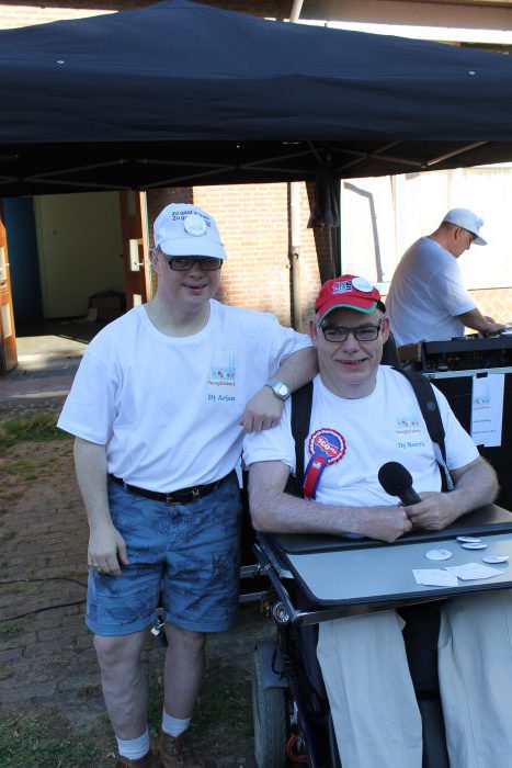 De Up & Down Discoshow ( dj’s met een verstandelijke beperking) draaide afgelopen woensdag in Druten tijdens de Nijmeegse wandel vierdaagse. Berrie en Arjan draaiden gezellige muziek en wisten het publiek en de wandelaars prima te vermaken.
